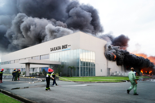 Vào lúc 16h ngày 18/9/2014, lửa bùng cháy dữ dội rồi nhanh chóng bao trùm Công ty Sakata chuyên sản xuất mực in có vốn đầu tư 14,5 triệu USD từ Nhật Bản, trụ sở tại Bình Dương.