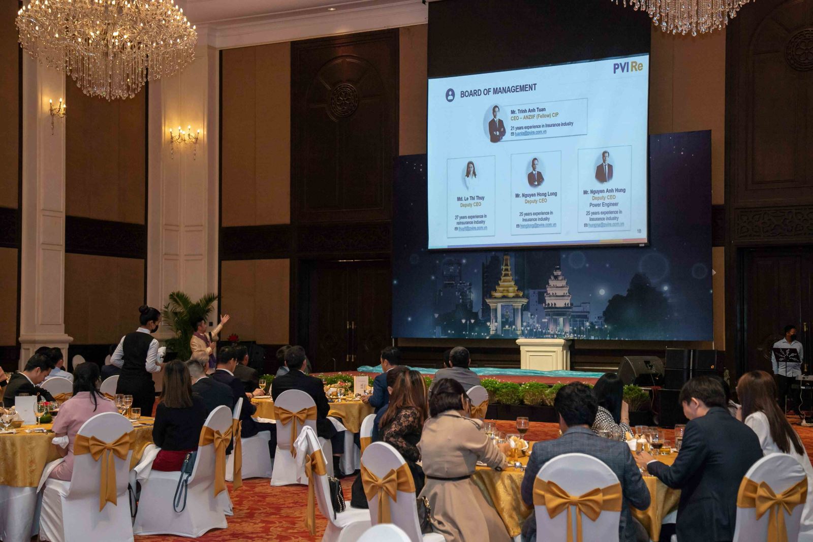 Attending the PVI Re Gala Dinner Phnom Penh 2022, PVI Re was honored to welcome the presence of Ms. Tan Linna – Deputy Director General of Cambodian Insurance Regulator and Mr. Huy Vatharo – Chairman of Cambodia Insurance Association, along with more than 70 distinguished guests who are member of Board of Management and reinsurance underwriters from all insurance/reinsurance companies in the Cambodian market.
