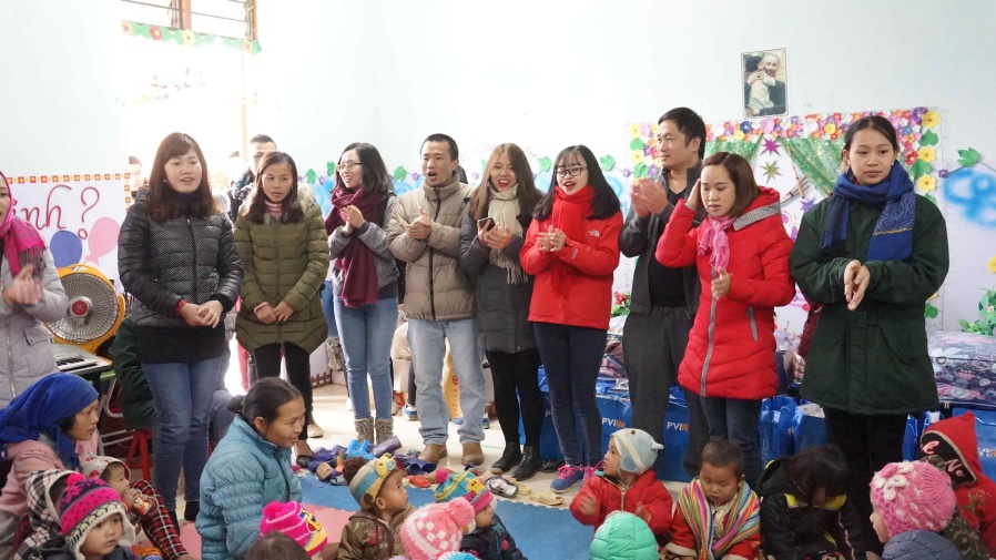 Trong chuyến hành trình này, đoàn từ thiện của PVIRe cùng với đại diện một số công ty khác trong thị trường đã tới thăm hỏi và trao số tiền ủng hộ 5 triệu đồng tiền mặt cho nhà trường cùng 100 suất quà bao gồm áo rét, ủng và 50 chiếc chăn bông cho các em nhỏ để giúp các em chống chọi với cái lạnh thấu xương của vùng cao Tây Bắc trong những ngày mùa đông giá rét. Đến với trường mầm non Tùng Vài, đoàn từ thiện còn dành thời gian nấu ăn, vui chơi và múa hát cùng các em nhỏ.
